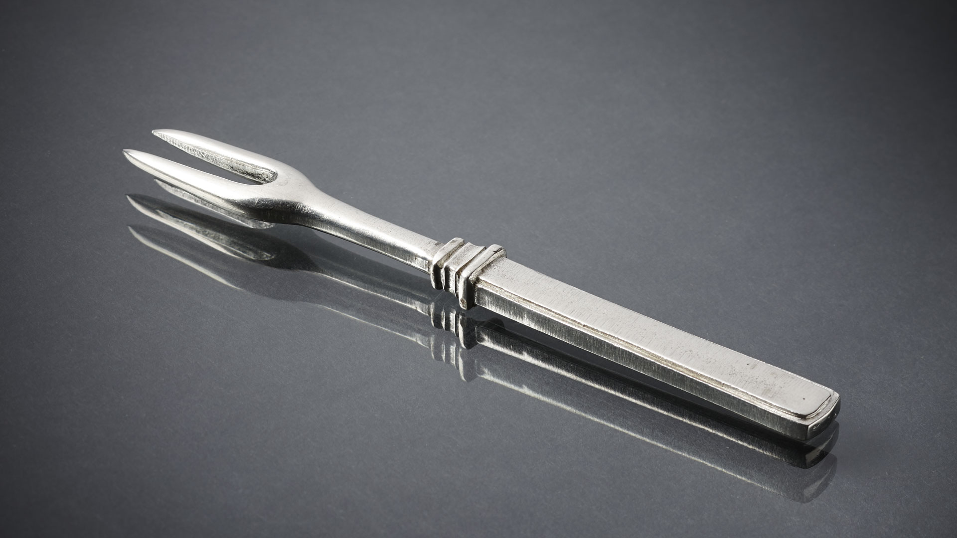La forchetta per olive "Gabriella", realizzata a mano in peltro dai nostri esperti artigiani, è un oggetto irrinunciabile per ogni tipo di aperitivo o banchetto.